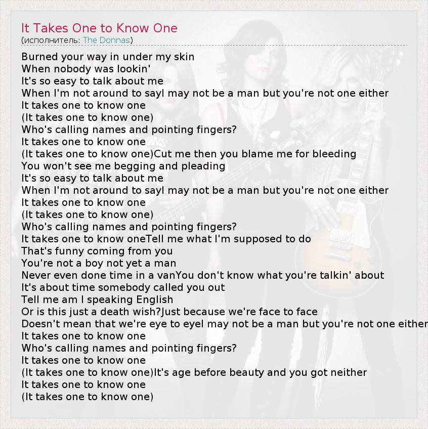 А как ты думаешь, о чем песня "It Takes One to Know One" ?