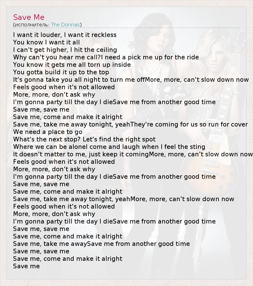 Save me, take me away tonight, yeahMore, more, can't slow down now