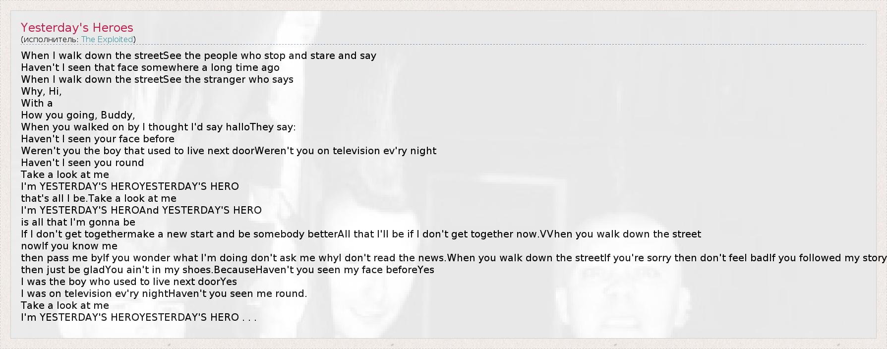 А как ты думаешь, о чем песня "Yesterday's Heroes" ?