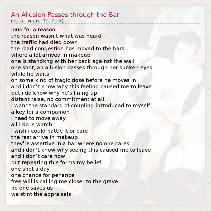 А как ты думаешь, о чем песня "An Allusion Passes through the Bar" ?