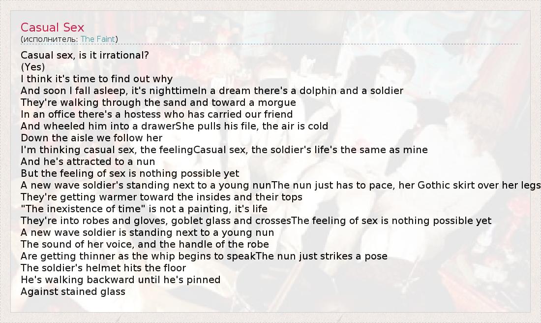 А как ты думаешь, о чем песня "Casual Sex" ?