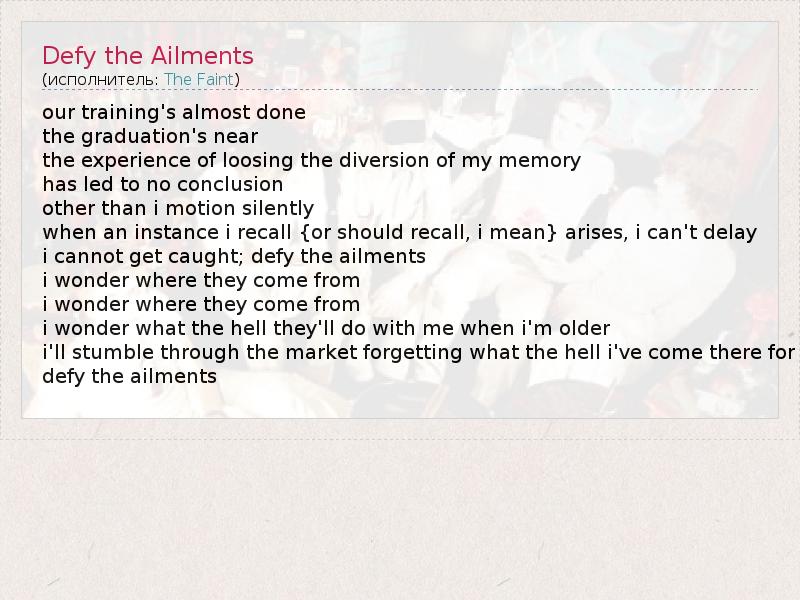 А как ты думаешь, о чем песня "Defy the Ailments" ?