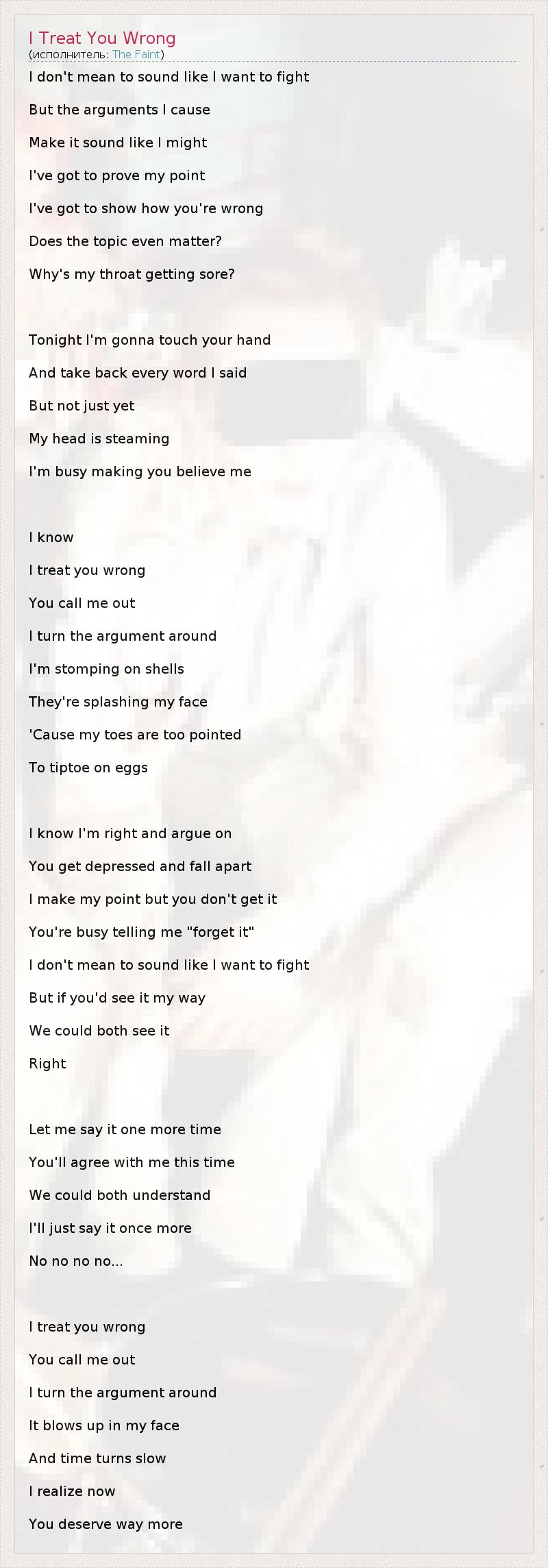 А как ты думаешь, о чем песня "I Treat You Wrong" ?