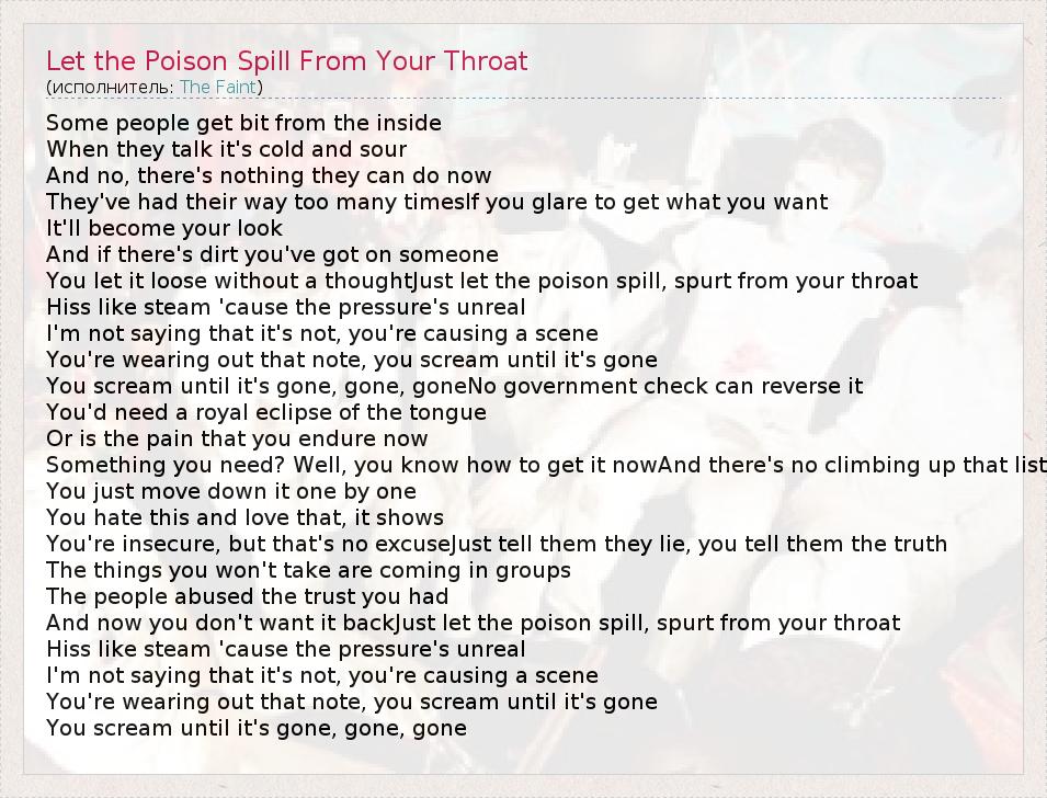 А как ты думаешь, о чем песня "Let the Poison Spill From Your Throat" ?