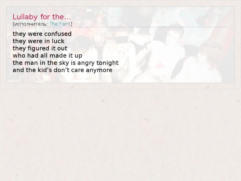 А как ты думаешь, о чем песня "Lullaby for the..." ?