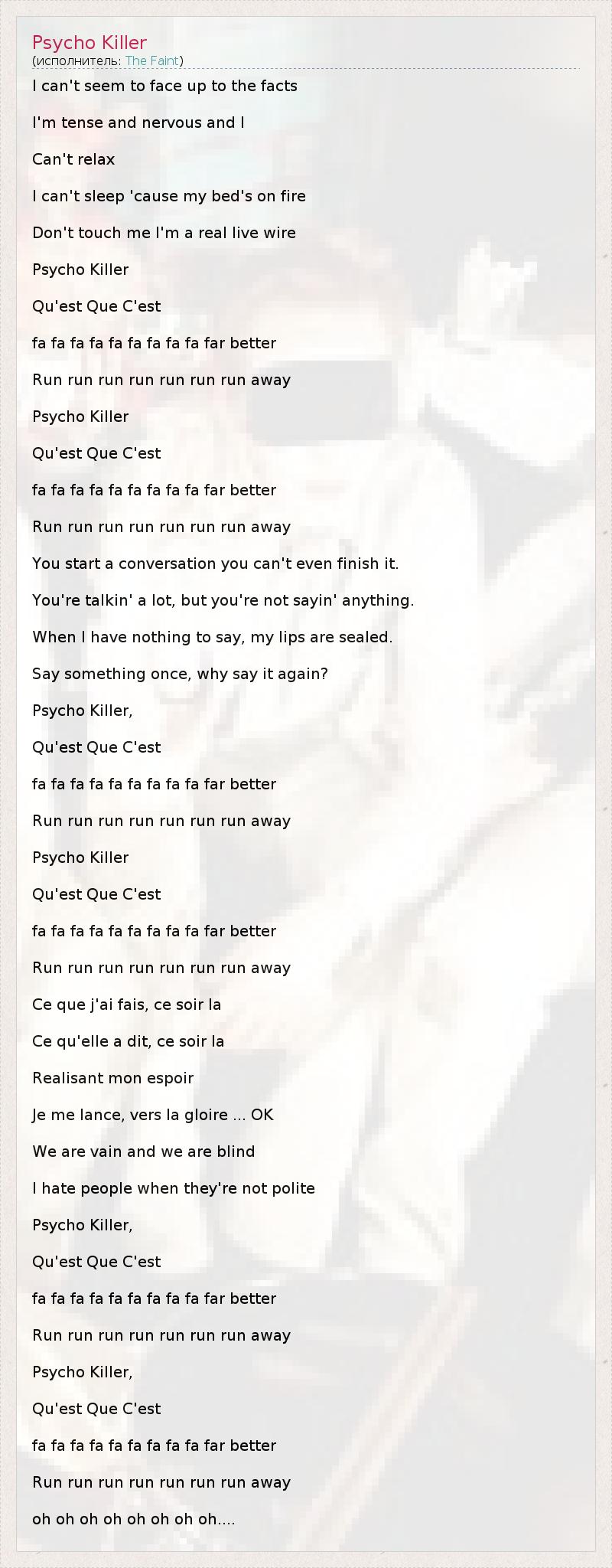 А как ты думаешь, о чем песня "Psycho Killer" ?