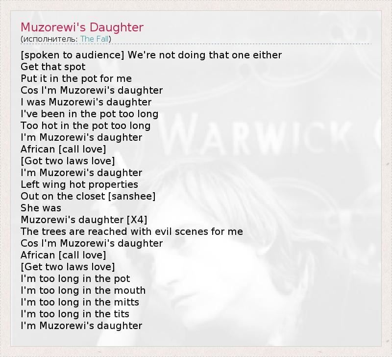 А как ты думаешь, о чем песня "Muzorewi's Daughter" ?