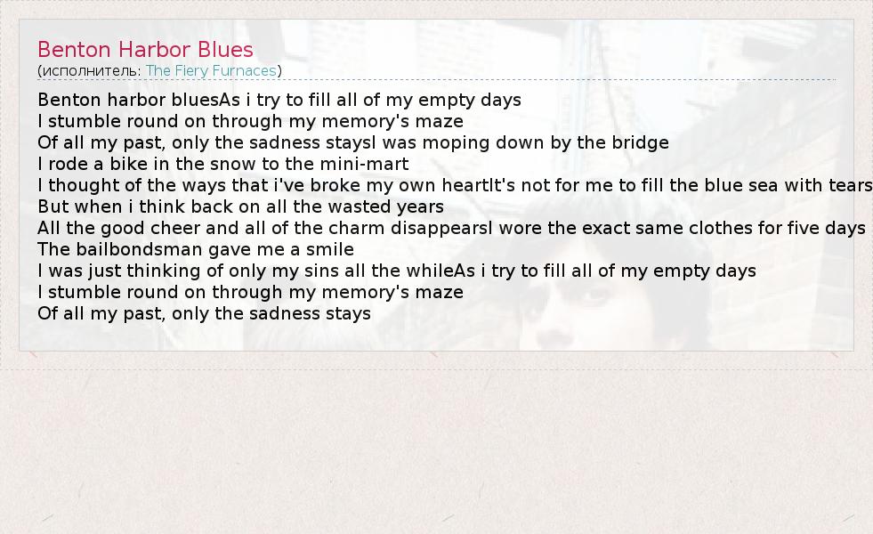 А как ты думаешь, о чем песня "Benton Harbor Blues" ?