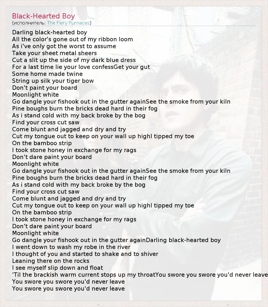 А как ты думаешь, о чем песня "Black-Hearted Boy" ?