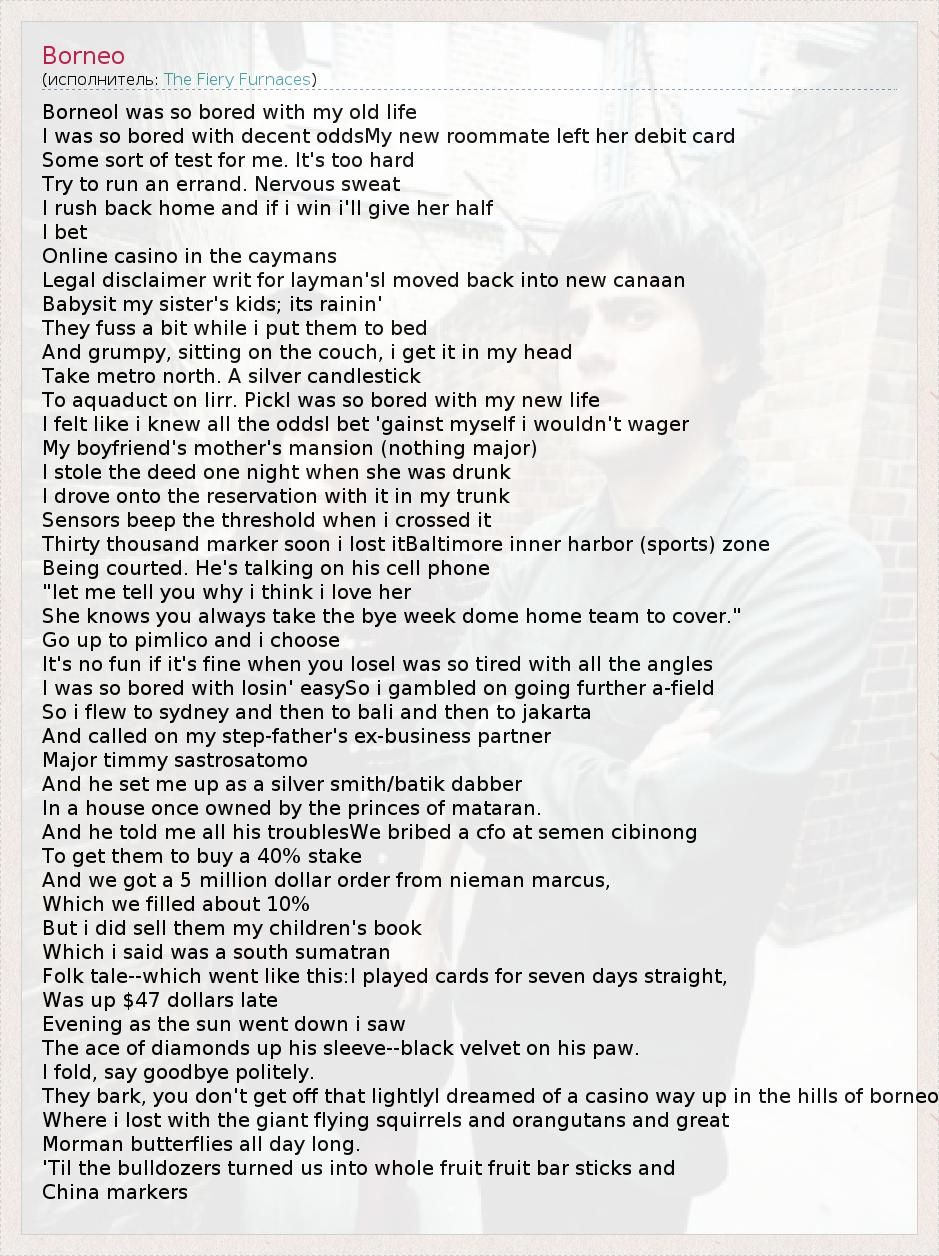 They bark, you don't get off that lightlyI dreamed of a casino way up in the hills of borneo