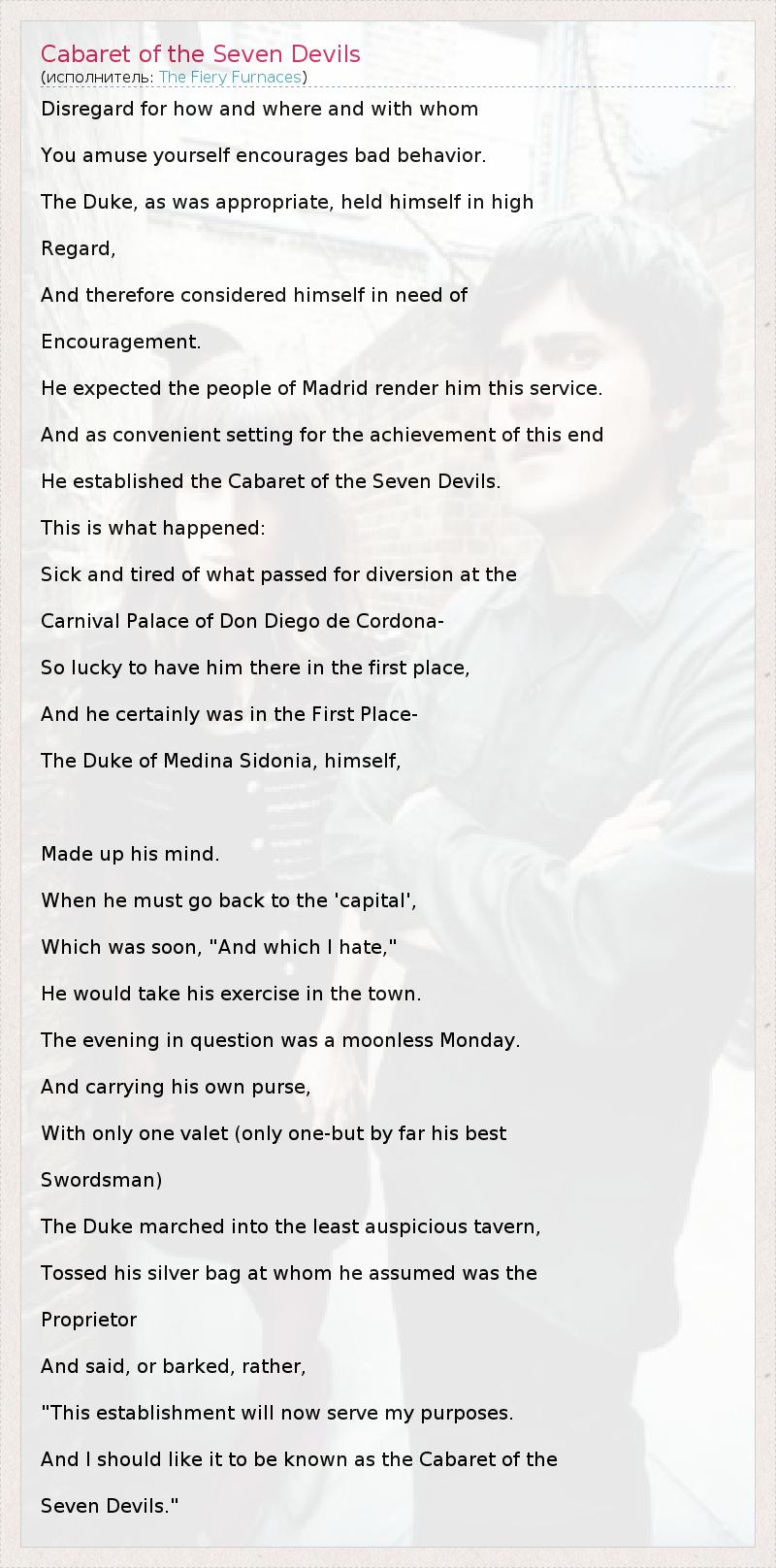 А как ты думаешь, о чем песня "Cabaret of the Seven Devils" ?