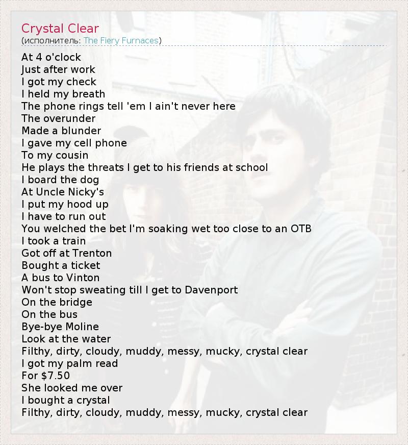 А как ты думаешь, о чем песня "Crystal Clear" ?