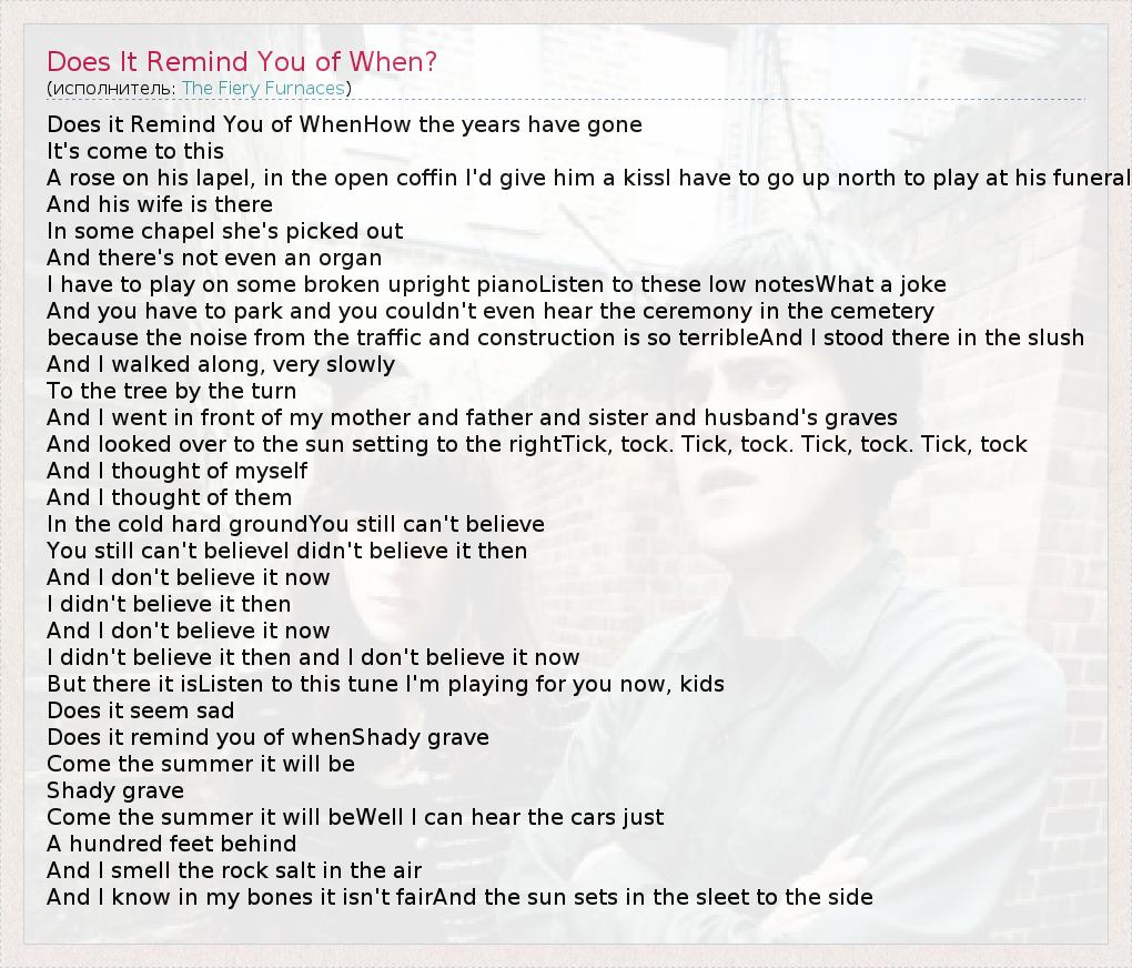 А как ты думаешь, о чем песня "Does It Remind You of When?" ?