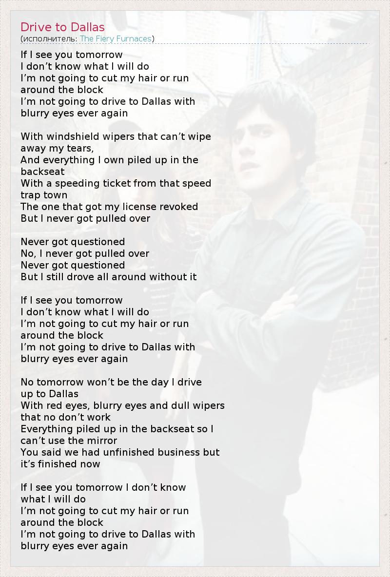 А как ты думаешь, о чем песня "Drive to Dallas" ?