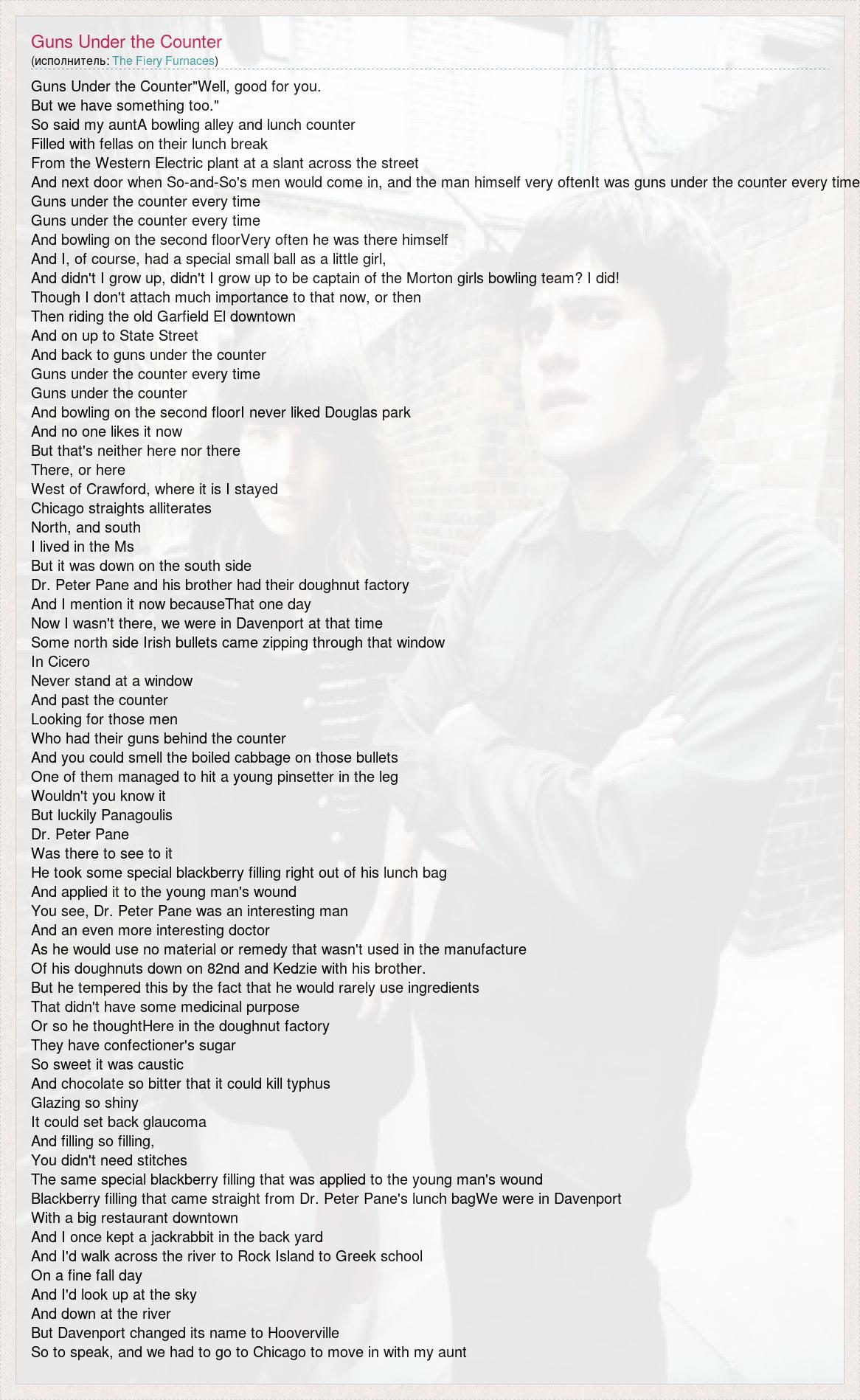 А как ты думаешь, о чем песня "Guns Under the Counter" ?