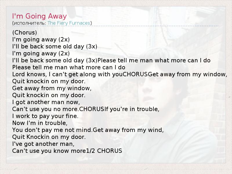 А как ты думаешь, о чем песня "I'm Going Away" ?