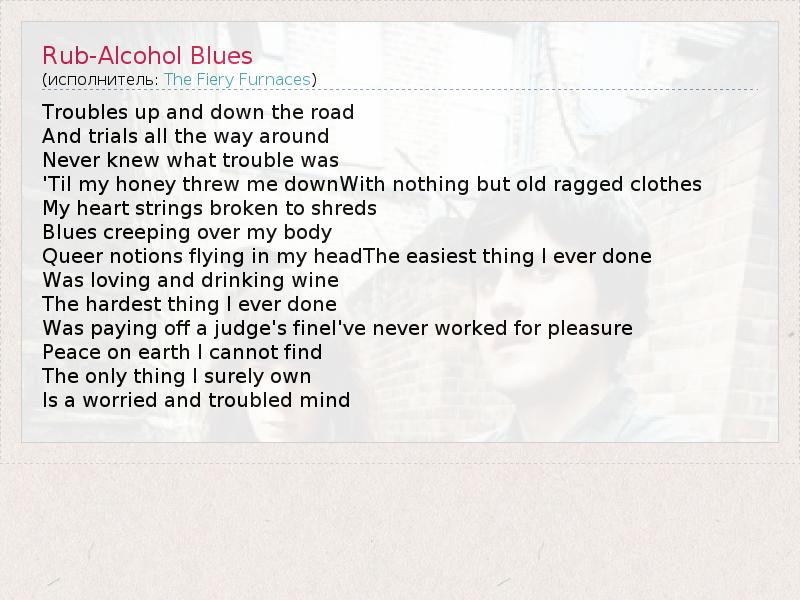 А как ты думаешь, о чем песня "Rub-Alcohol Blues" ?