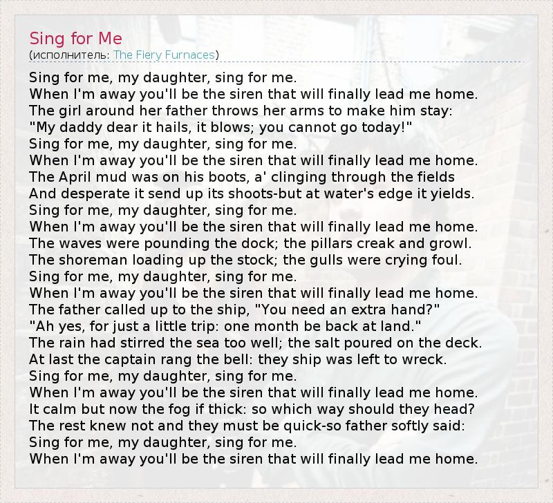Sing for me, my daughter, sing for me.