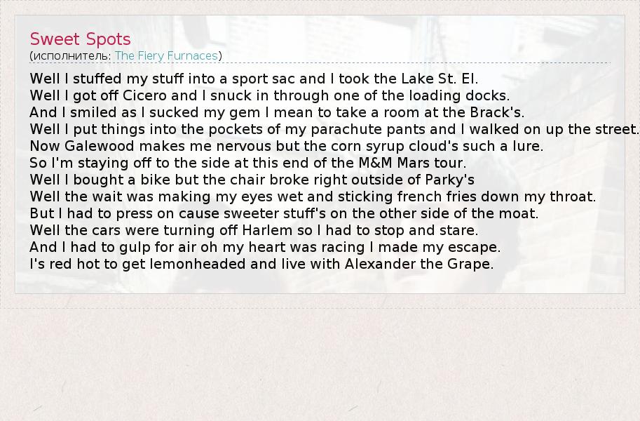 А как ты думаешь, о чем песня "Sweet Spots" ?