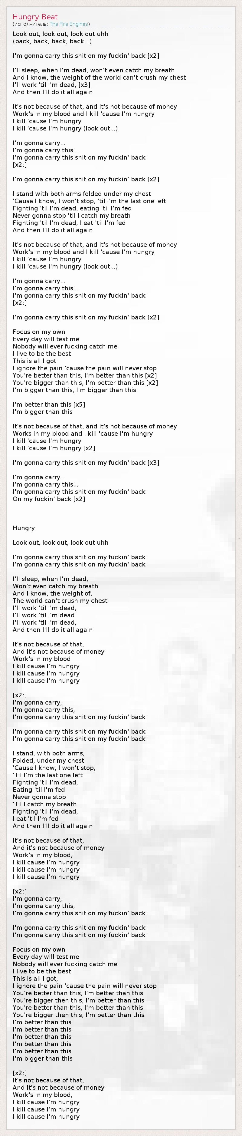 А как ты думаешь, о чем песня "Hungry Beat" ?