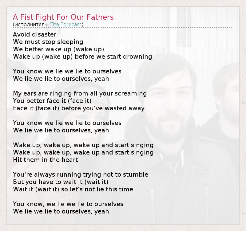 ГлавнаяИсполнителиThe ForecastA Fist Fight For Our Fathers