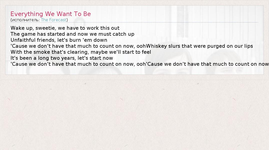 ГлавнаяИсполнителиThe ForecastEverything We Want To Be