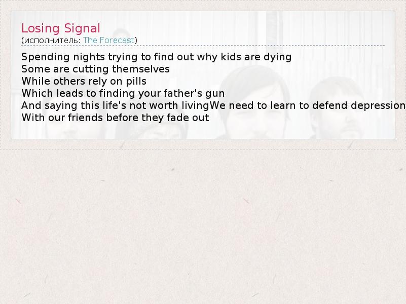 А как ты думаешь, о чем песня "Losing Signal" ?