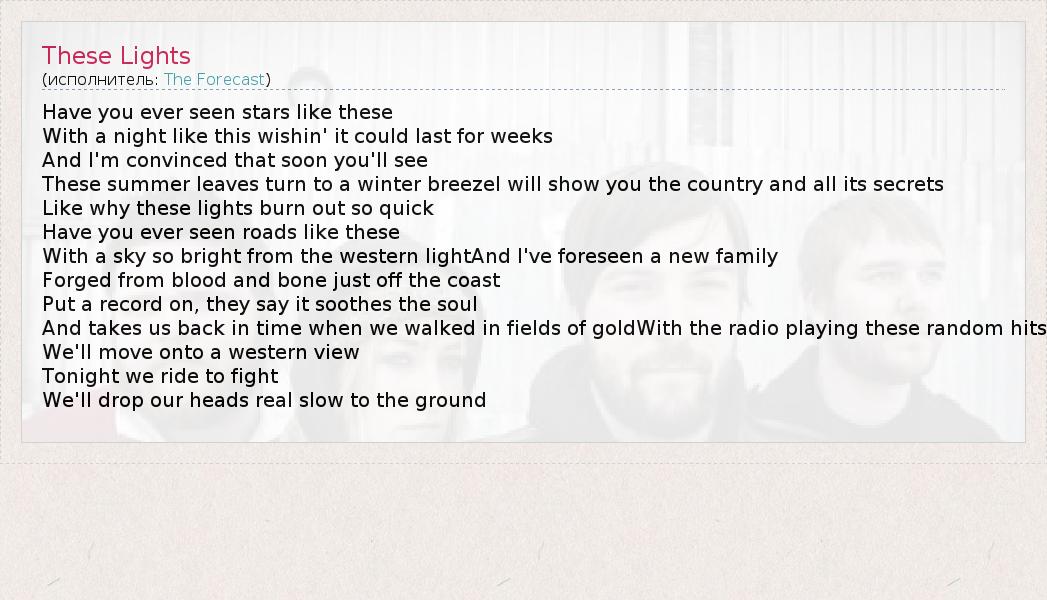 Это интересно:Season's First Rain - эмопанк группа, созданная в городе Барнаул (Алтайский Край) в 2010 году в составе Таня - ударные, Рома - гитара, Стас - вокал. Решено было играть то, что получалось, так как никто особо играть то и не умел. Первые концерты проходили на полуработающем почти заброшенном заводе, где число зрителей варьировалось от 5 до 30. В первые месяцы существования были записаны собственноручно... продолжение