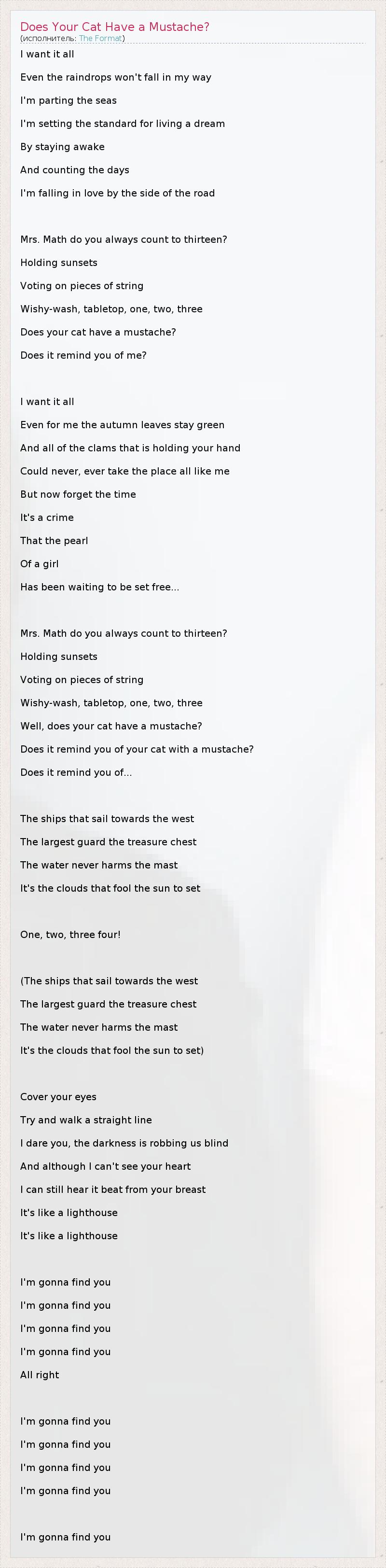 А как ты думаешь, о чем песня "Does Your Cat Have a Mustache?" ?