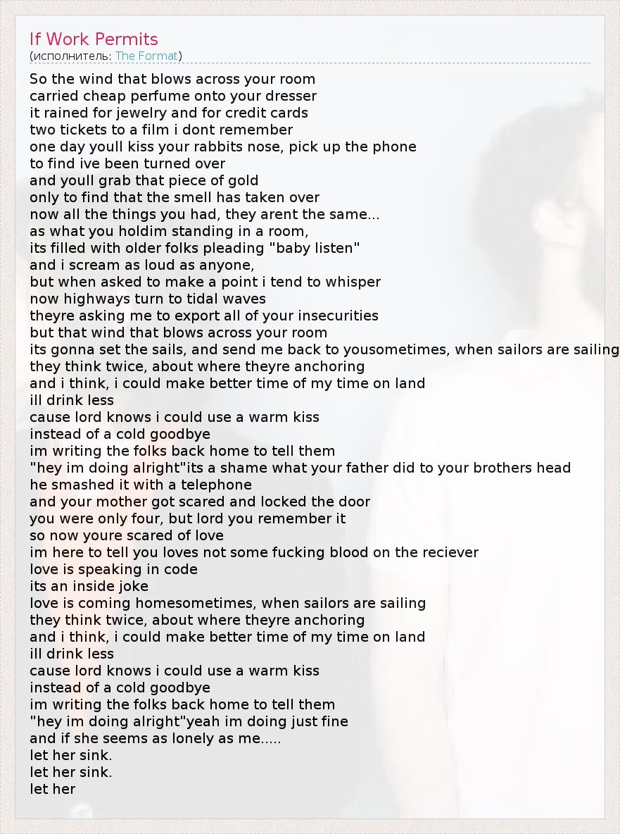 А как ты думаешь, о чем песня "If Work Permits" ?