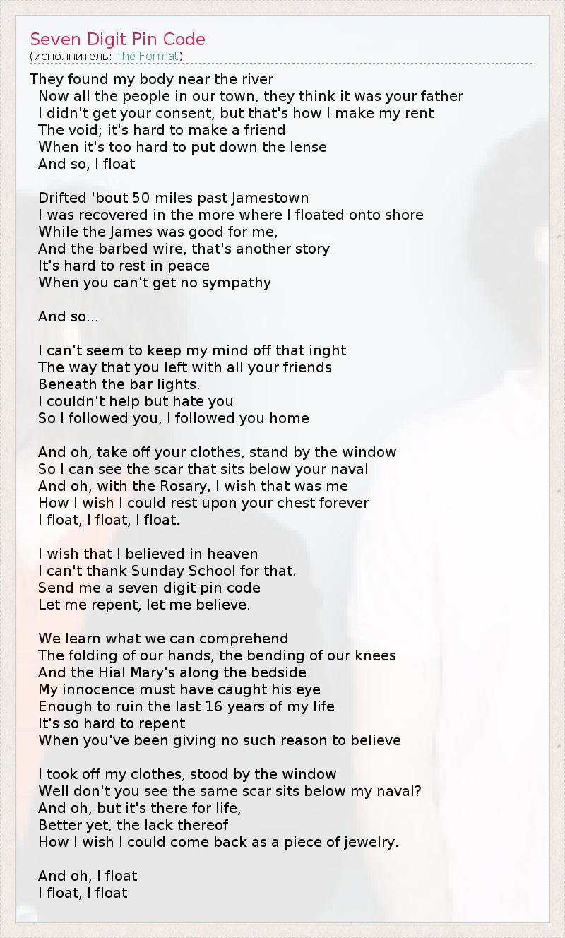 А как ты думаешь, о чем песня "Seven Digit Pin Code" ?