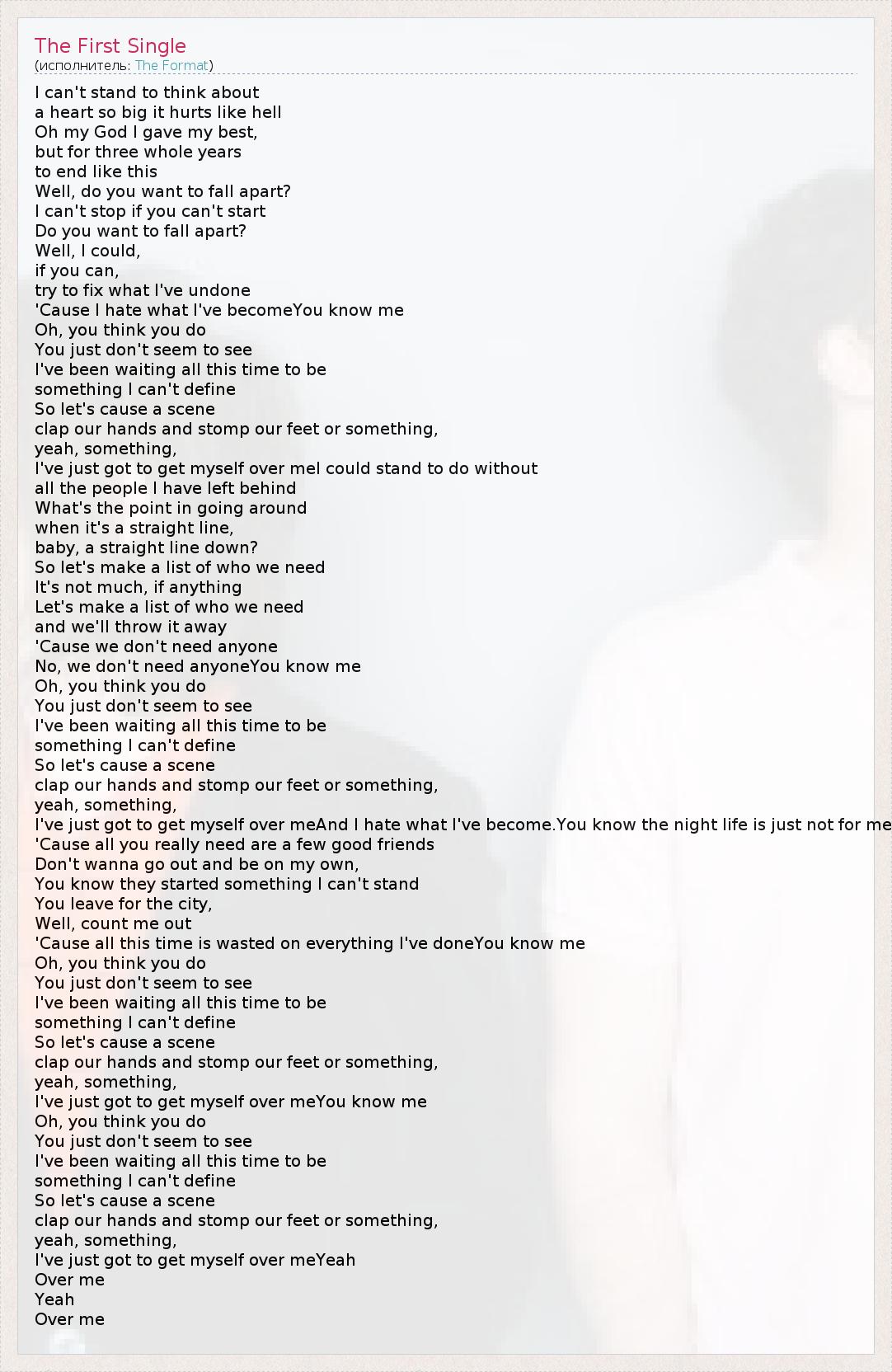 I've just got to get myself over meAnd I hate what I've become.You know the night life is just not for me