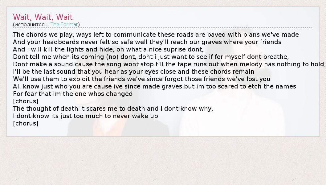 А как ты думаешь, о чем песня "Wait, Wait, Wait" ?