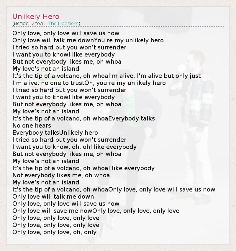 А как ты думаешь, о чем песня "Unlikely Hero" ?