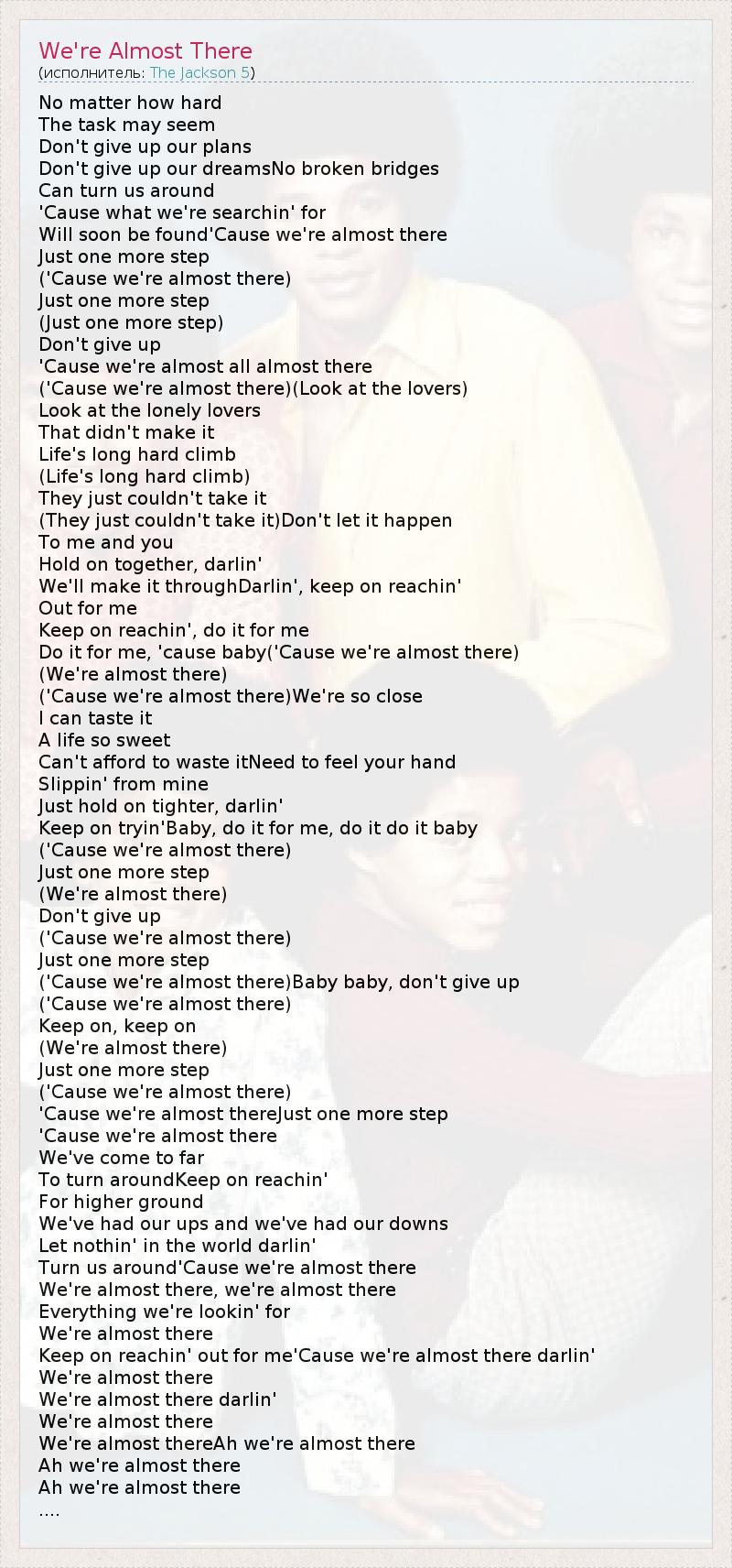 А как ты думаешь, о чем песня "We're Almost There" ?