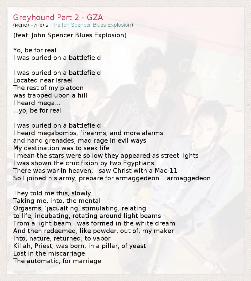А как ты думаешь, о чем песня "Greyhound Part 2 - GZA" ?