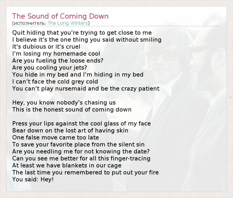 А как ты думаешь, о чем песня "The Sound of Coming Down" ?