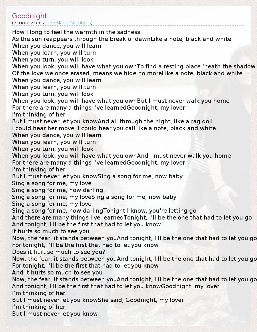 And tonight, I'll be the first that had to let you knowGoodnight, my lover