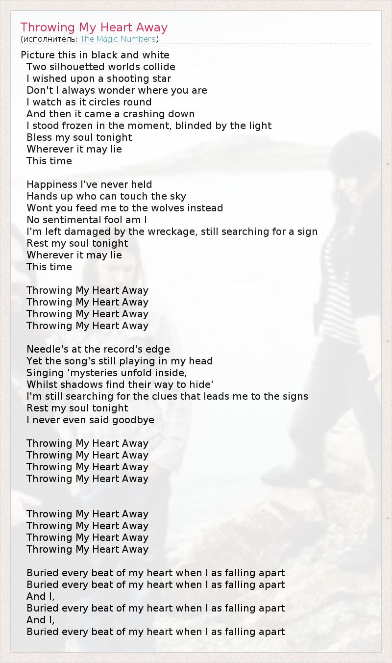 А как ты думаешь, о чем песня "Throwing My Heart Away" ?