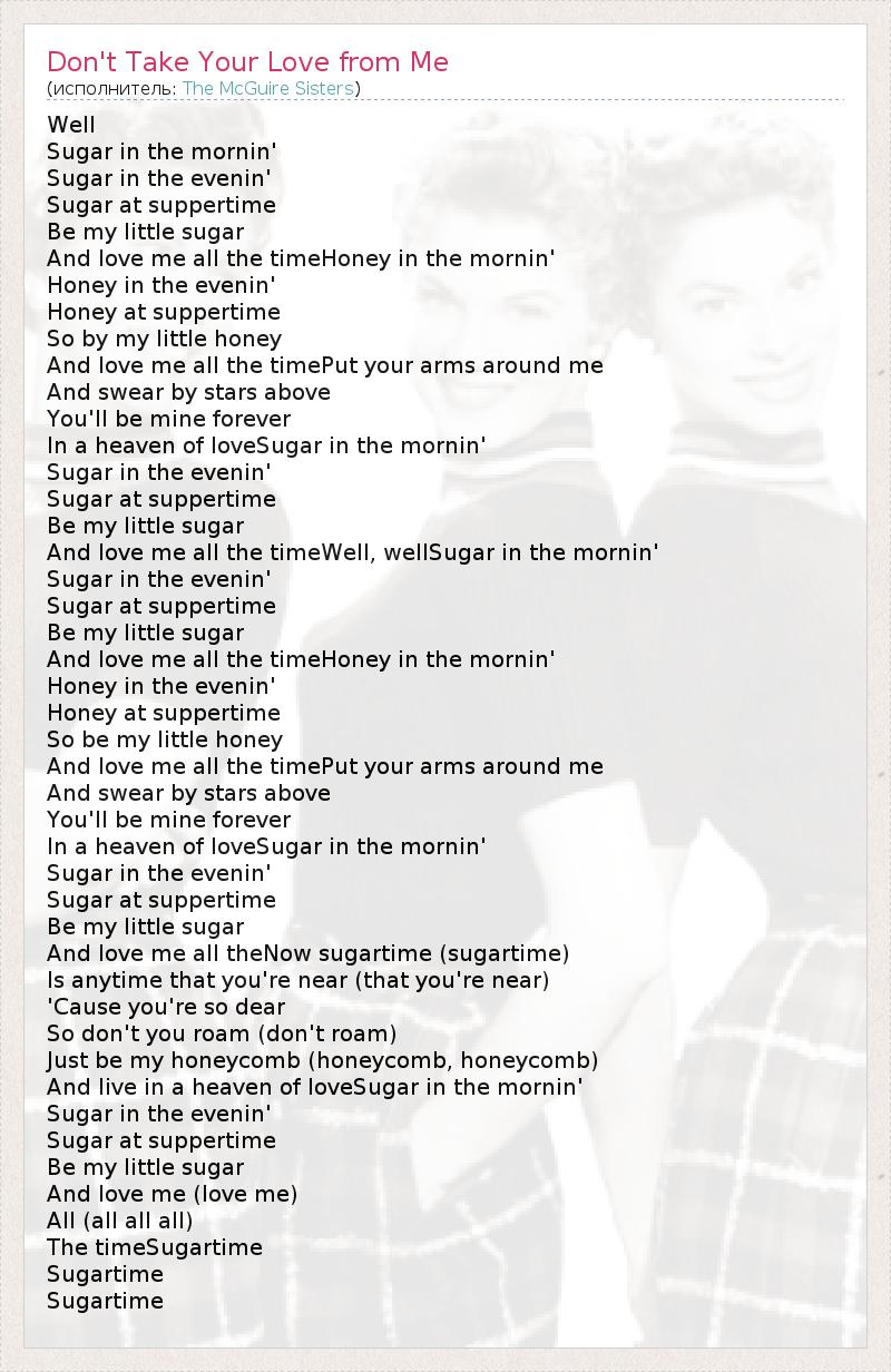 ГлавнаяИсполнителиThe McGuire SistersDon't Take Your Love from Me