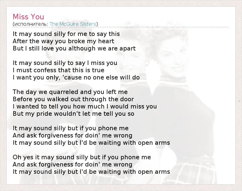It may sound silly to say I miss you