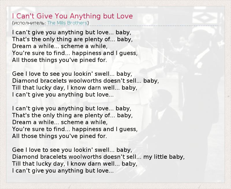 А как ты думаешь, о чем песня "I Can't Give You Anything but Love" ?