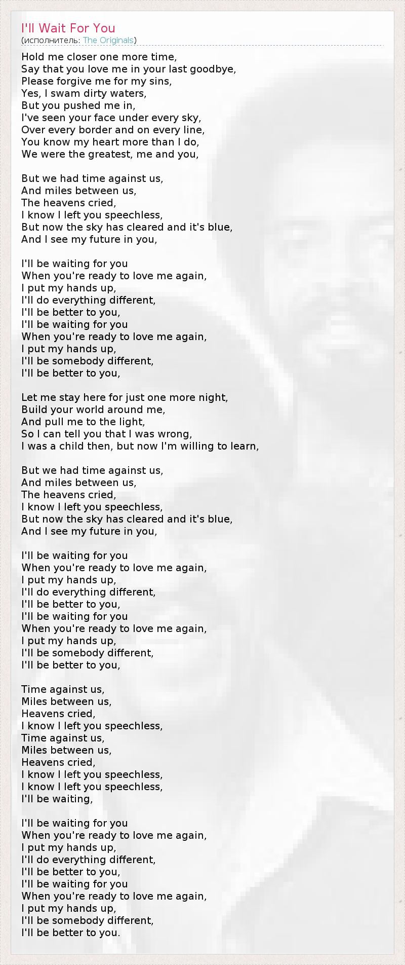 А как ты думаешь, о чем песня "I'll Wait For You" ?