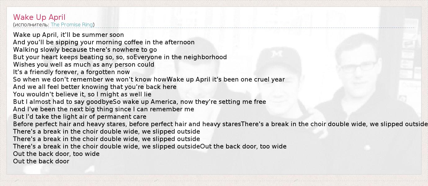 А как ты думаешь, о чем песня "Wake Up April" ?