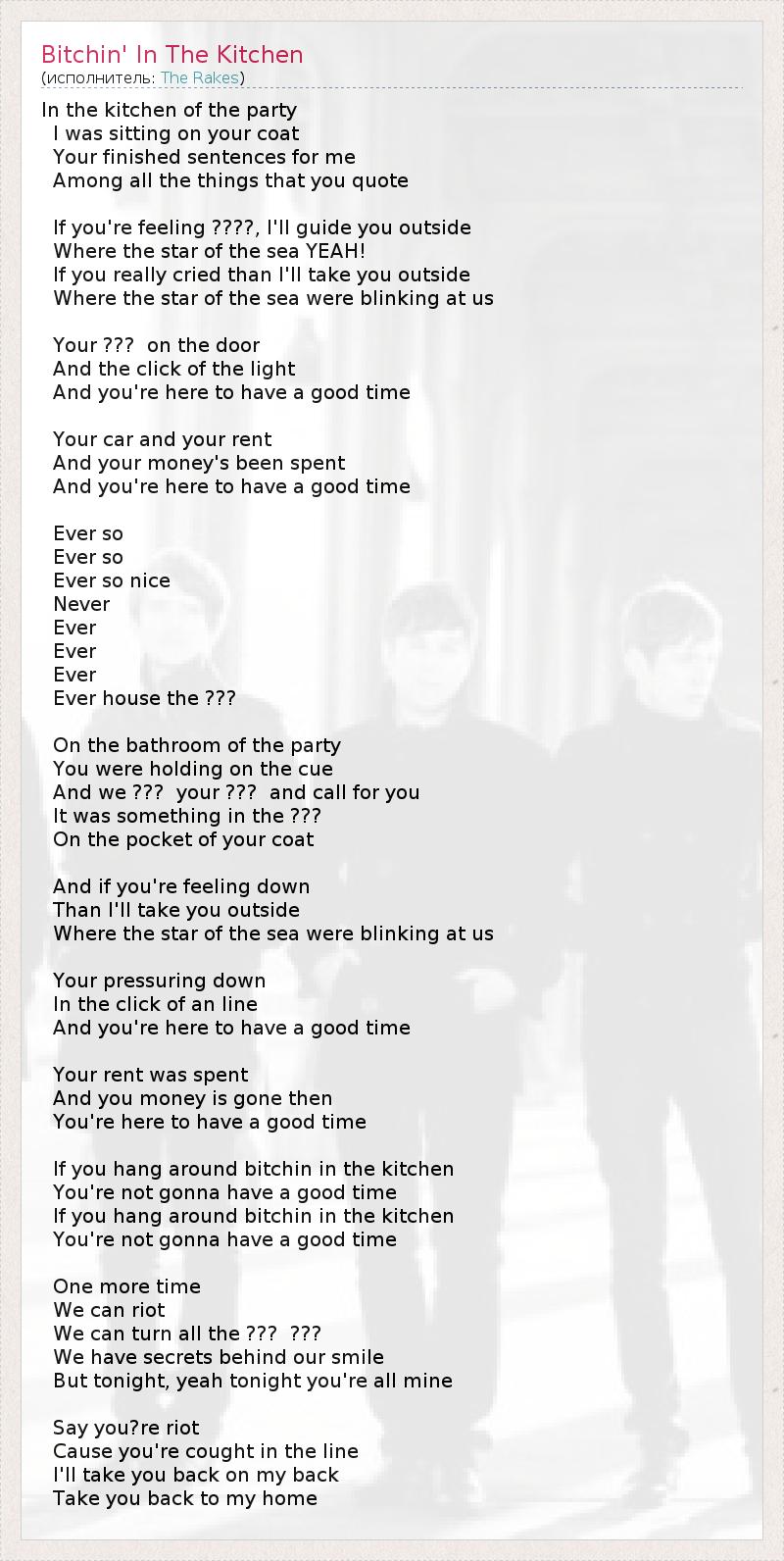 А как ты думаешь, о чем песня "Bitchin' In The Kitchen" ?
