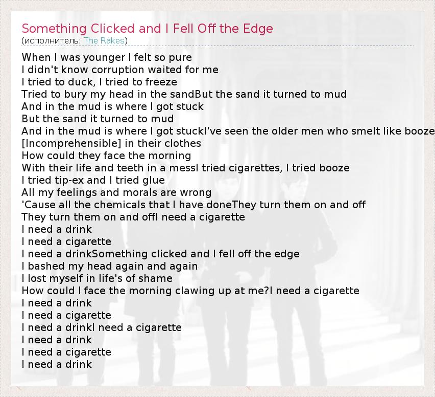 ГлавнаяИсполнителиThe RakesSomething Clicked and I Fell Off the Edge