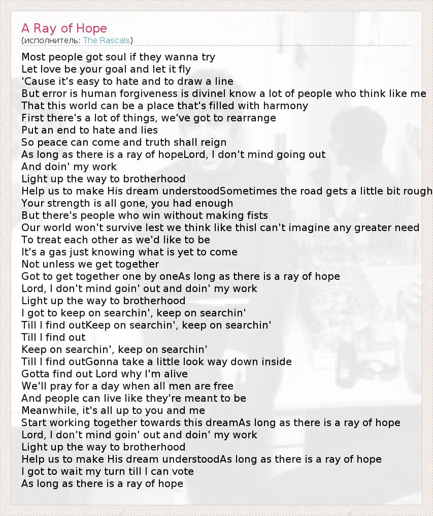А как ты думаешь, о чем песня "A Ray of Hope" ?