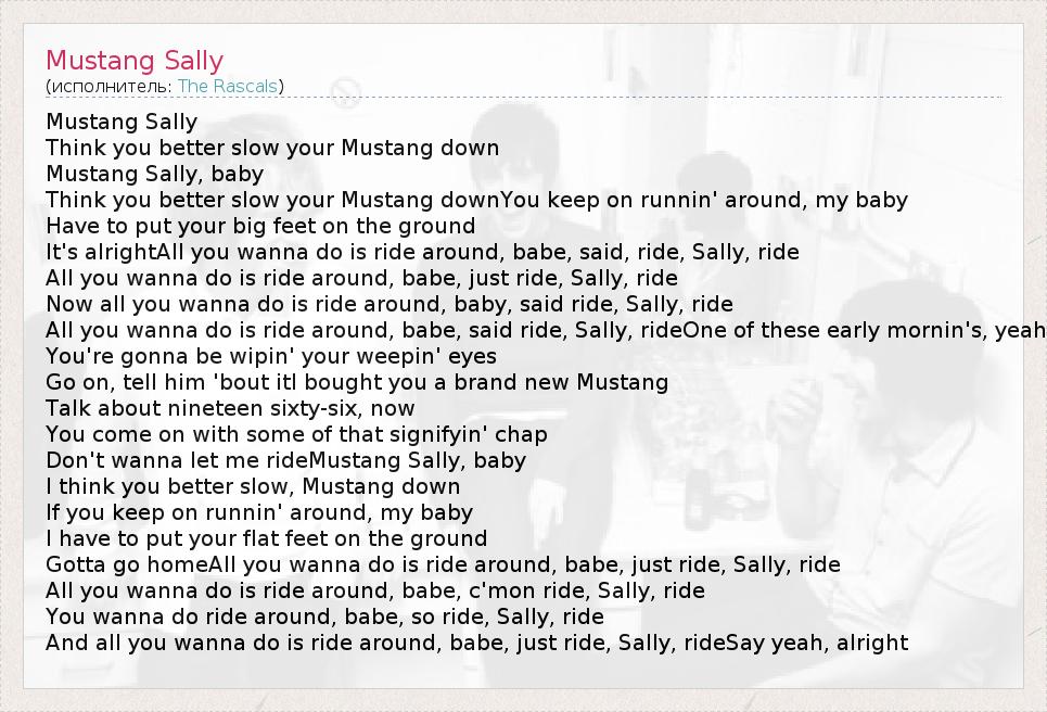 А как ты думаешь, о чем песня "Mustang Sally" ?