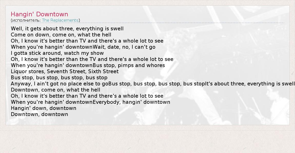 А как ты думаешь, о чем песня "Hangin' Downtown" ?