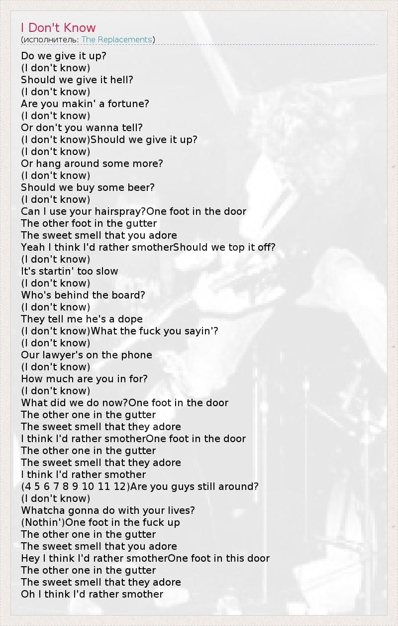 А как ты думаешь, о чем песня "I Don't Know" ?